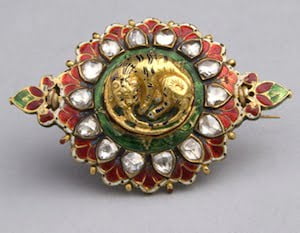 Enamelled and diamond bazuband with raised tiger exhibited by Susan Ollemans Oriental Art at Art Antiques London